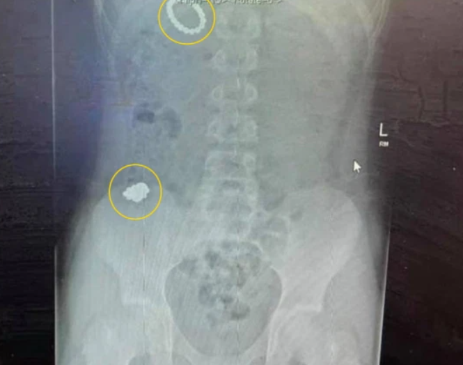 Una radiografía reveló que había muchos más que eso y, temiendo que pudieran quemar sus órganos y matarlo, lo llevaron de urgencia a cirugía para una operación de seis horas.