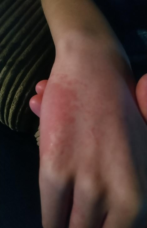 “Para el jueves, había desarrollado una erupción similar al sarampión en sus manos y sus ojos se pusieron rojos e inyectados en sangre.