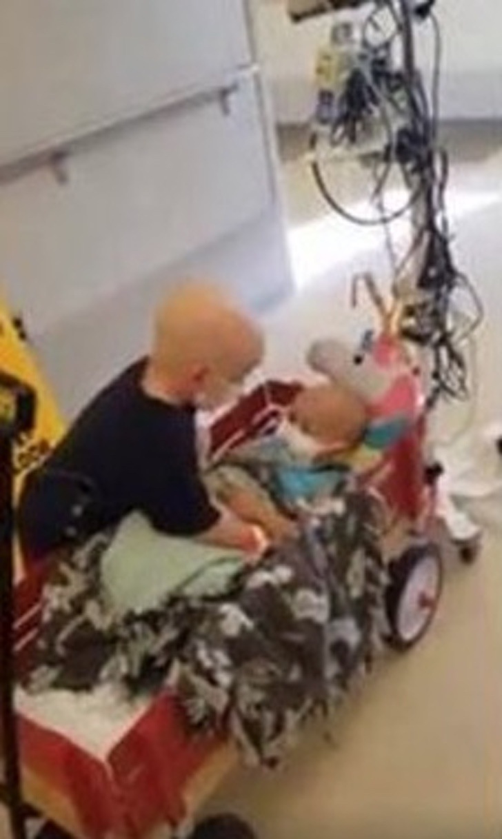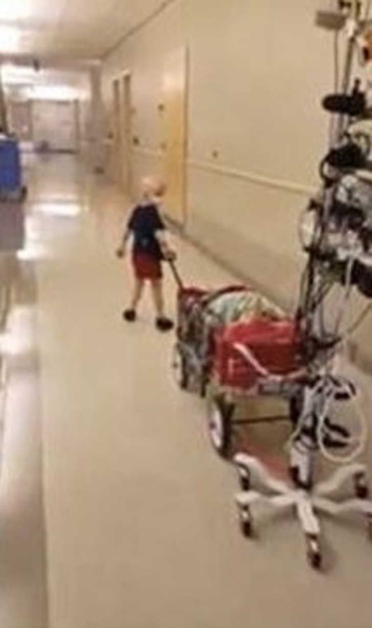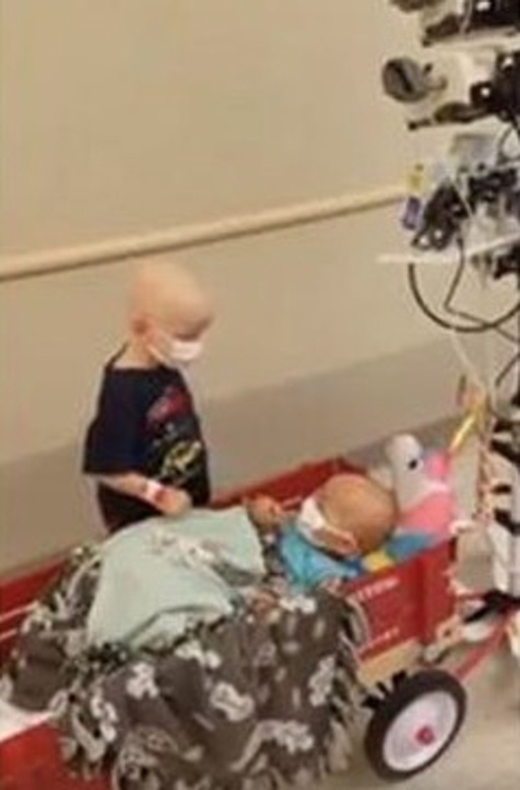 En unas imágenes podemos ver como un pequeño traslada a su amiga en un carrito y juntos recorren los pasillos del hospital, que aún se desconoce cuál es.