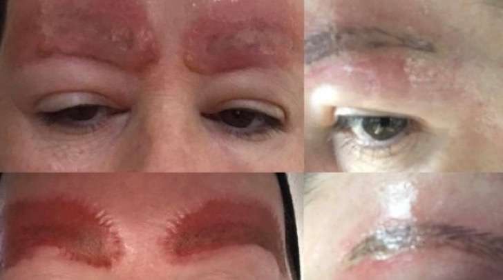 Desafortunadamente, al día siguiente, se miró al espejo y notó que tenía hinchada y roja esa zona. La mujer contrajo una infección que le provocó terribles heridas y la pérdida total de sus cejas.