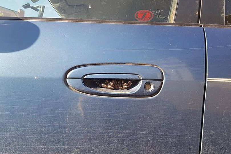 ¿El motivo? Ha encontrado una criatura aterradora debajo de la manija de la puerta del automóvil.