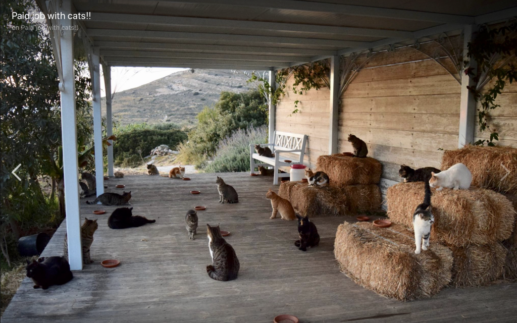 Para todos aquellos amantes de los gatos, una organización llamada “God´s Little People Cat Rescue” tiene un tiempo ofreciendo empleo que consiste en vivir en una isla griega para alimentar y darles cuidados a 55 gatos callejeros.