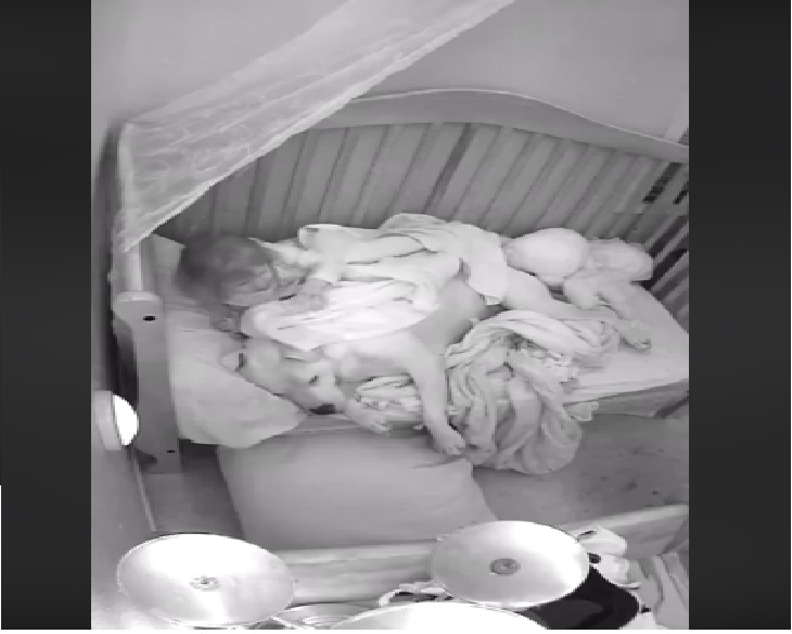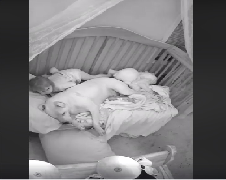 Después de la catástrofe, la niña no se atrevió a dormir sola, porque estaba muy asustada. Es por eso que sus padres le permitieron llevar a su Pitbull Fury a la cama. La noche pasó rápidamente, y luego los padres examinaron el video de la cámara de vigilancia, que estaba ubicada justo encima de su cuna.