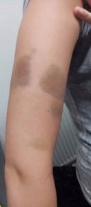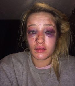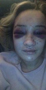 Pero Bibby la atacó, abofeteándola y golpeándola repetidamente en la cara, haciendo que su labio explotara. También trató de estrangularla y la golpeó con la cabeza.
