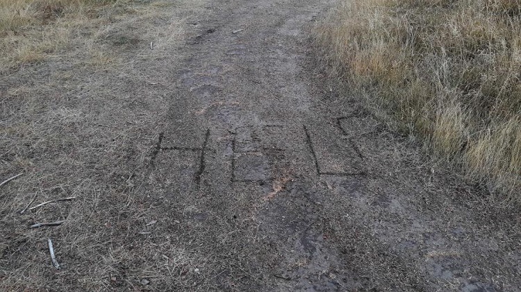 Cuando se acercaron, vieron que alguien había garabateado la palabra “Ayuda” (help) en el suelo.
