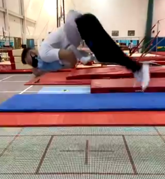 Un padre ha escandalizado las redes sociales después de dar un salto mortal con su hija en brazos.