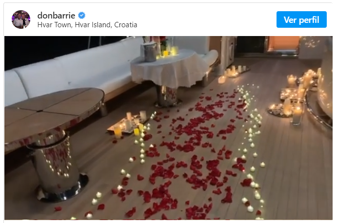 La semana pasada, Barrie publicó un video de cómo se creó la propuesta, mostrando un bote que estaba decorado de manera colorida con velas y pétalos de rosa. Había un enorme anillo de plata y diamantes para la ocasión, así como una botella de champán.