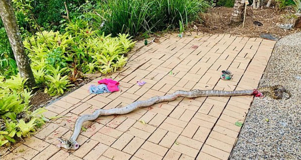 Más tarde, la serpiente cayó al jardín con la mandíbula rota. El hijo de Evan sufrió heridas por el ataque de la serpiente y fue llevado de urgencia al hospital más cercano.