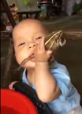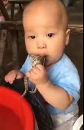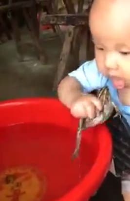 Como un video que se volvió viral. No se sabe con certeza dónde fue grabado, ni en qué fecha, pero se trata de un bebé de 8 meses, de origen asiático, que lucha por comerse un sapo vivo. El video del menor metiéndose a la boca el anfibio vivo ha desatado un debate en redes. Se puede observar cómo el bebé agarra al animal de un balde con agua, lo toma por la cabeza y luego de las extremidades.