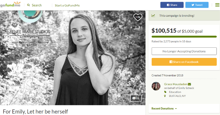 Después de estos acontecimientos inesperados, la amiga de Emily Grace Hausladen creó una página de crowdfunding para ayudar a la adolescente con sus gastos.