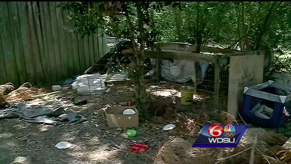 La jaula en la que vivía estaba hecha de alambre de gallina y cubierta con una lona. También se colocó un cubo en la jaula que la víctima utilizó como retrete. Supuestamente no le permitieron un teléfono o una computadora y se vio obligada a tomar analgésicos y metanfetamina.