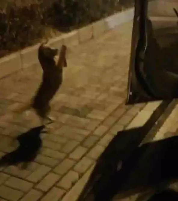 En el video, se puede ver al perro hambriento parado sobre sus patas traseras mientras balancea sus patas delanteras como si pidiera comida.