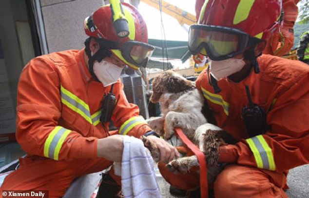 Un perro de rescate de seis años salvó la vida de seis personas atrapadas en un hotel de cuarentena colapsado en la provincia de Fujian, en el sureste de China.