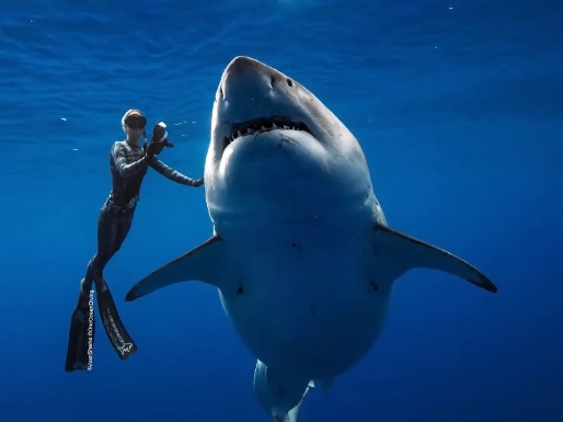 Uno de los grandes blancos más grandes jamás registrado es Deep Blue, de 50 años, que fue visto por primera vez en México hace unos cuatro años.