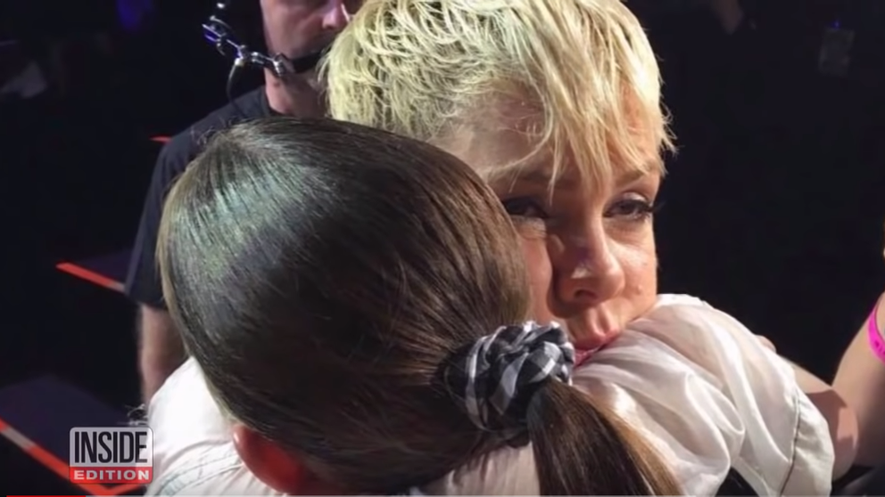 Pink decidió interrumpir todo, se bajó del escenario y abrazó a la chica.