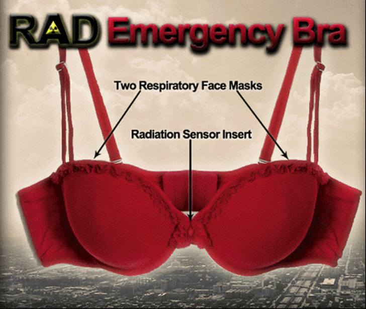 Elena Bodnar quien, en ese momento, era la fundadora y presidenta del Instituto de Investigación de Gestión de Riesgos de Trauma en Chicago. Este sujetador puede transformarse en dos máscaras de gas con sistemas de correa independientes.
