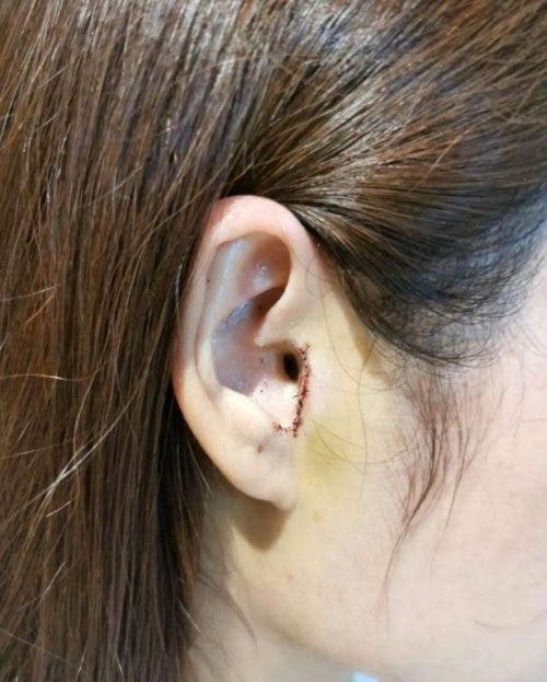 Estaba intentando escuchar música con sus audífonos, pero el dispositivo no paraba de caerse de su oreja. A Zhao también le practicaron una liposucción en sus brazos. Acudió al espejo y fue entonces cuando se dio cuenta de algo sorprendente. La zona externa de su oreja que tiene forma triangular, el trago, ya no estaba.