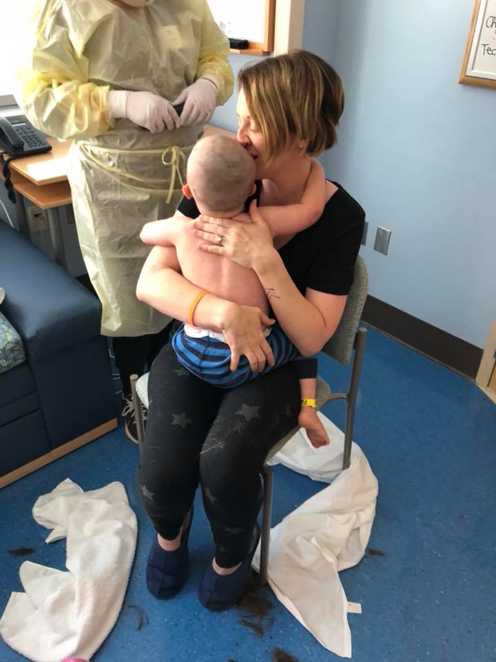 Entonces esta madre acordó con una enfermera una cita para que afeitaran la cabeza de Wyatt y lo hicieron en el hospital.