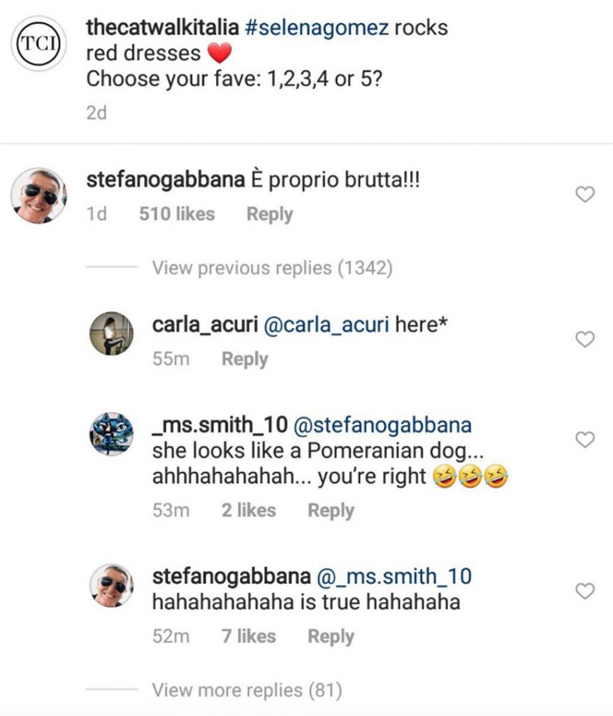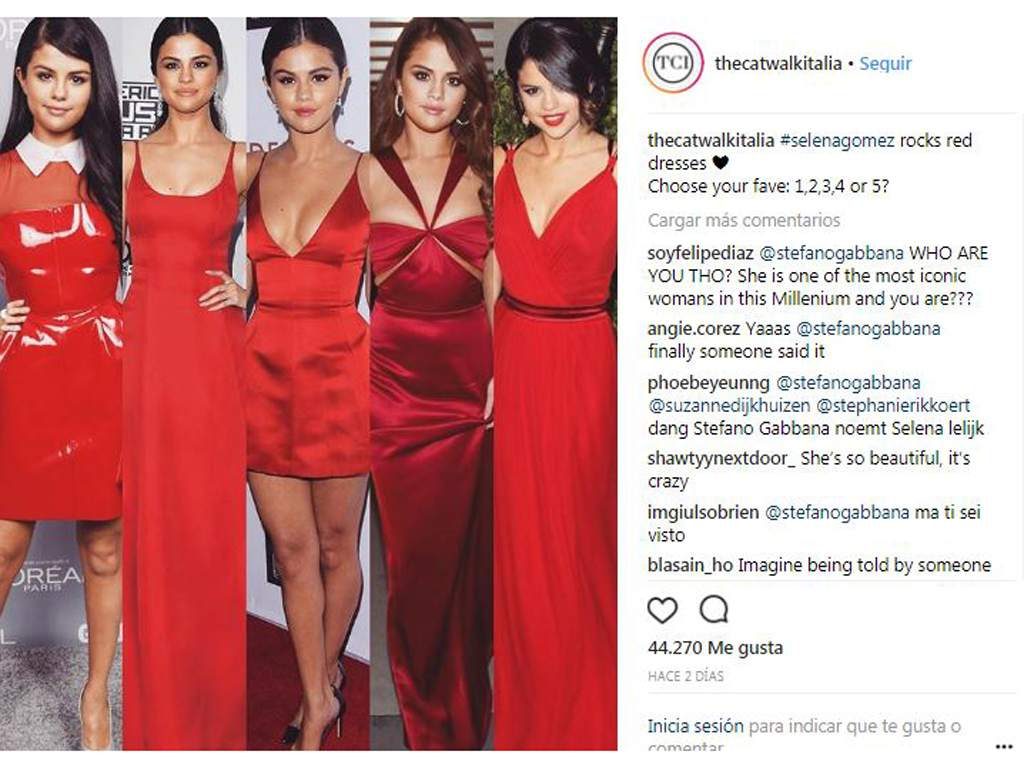 En una cuenta de Instagram aparecieron unas fotografías de Selena vistiendo de color rojo, las imágenes están acompañadas del texto: “è proprio brutta” (en italiano), su traducción es “tan fea”.