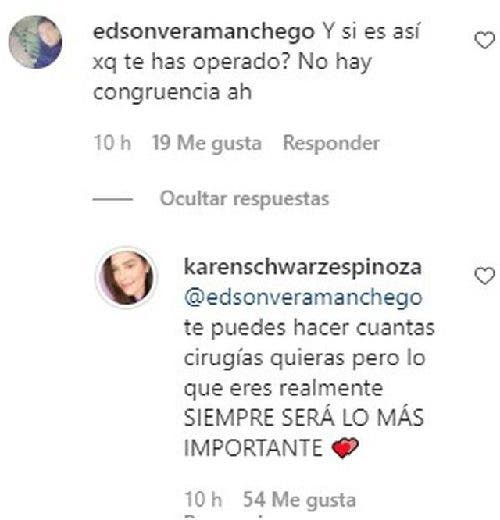 Una usuaria más le salió al paso y le recalcó que, cualquiera se ve así de bien con unos “arreglitos de más”. Otra de las críticas recibidas por la peruana en su publicación expresa que, si realmente pensaba de esa manera, no estaba siendo honesta ni congruente con sus palabras, ya que ha pasado varias veces por el quirófano.