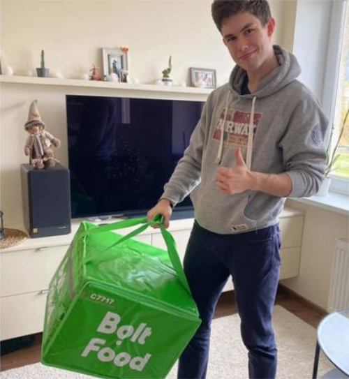Roman, quien es residente de Lituania, debía encontrar una solución para cubrir sus gastos. Decidió repartir su tiempo entre ser repartidor de alimentos y trabajar medio tiempo como agente de ventas de un establecimiento de repuestos para aviación.