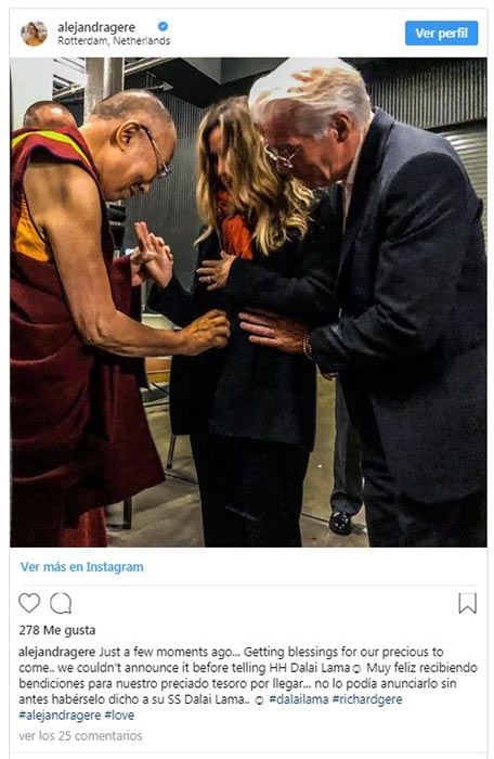 “Un momento muy especial hace solo unos minutos … Obtener bendiciones para que venga nuestro precioso. No podíamos anunciarlo antes de decirle a HH Dalai Lama”, escribió Alejandra junto a la fotografía.
