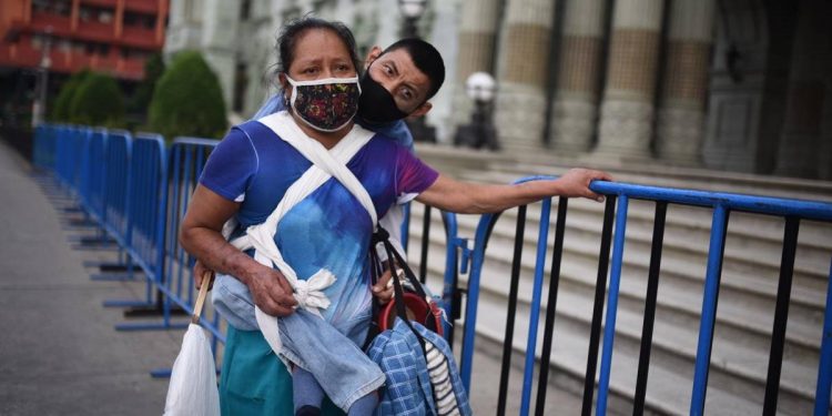 Esta mujer vive alquilada en un pequeño espacio, por lo que debe pagar mensualmente la cantidad de 800 quetzales (100 dólares), así que ni el confinamiento impuesto por el Covid-19 se le ha presentado como un obstáculo para salir cada día con Gerónimo a sus espaldas en busca de alguien que les regale dinero. “Me dedico a pedir mis centavos en los mercados y en la calle con mi hijo”, comenta Catalina García Pérez.