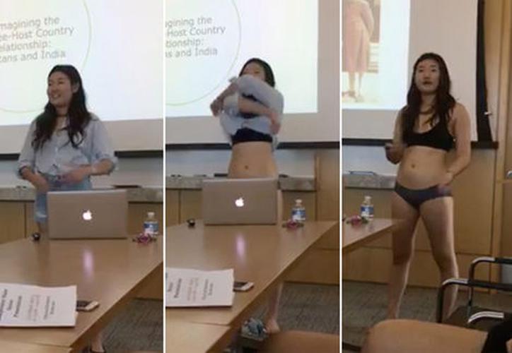 UU.) llamada Letitia Chai, se desvistió quedándose solo en ropa interior como protesta contra las “creencias opresivas” de su profesora, mientras presentaba su tesis.