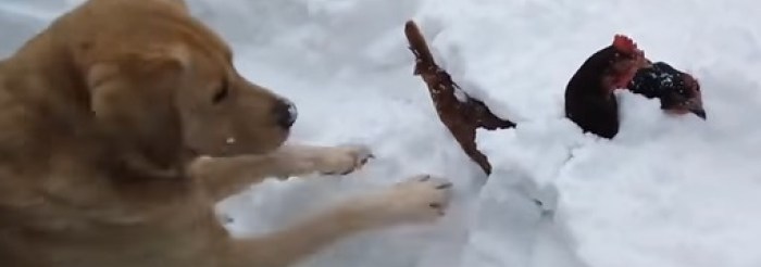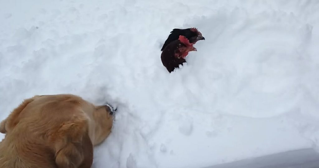 El dueño del perro le hizo una señal para que salvara a las gallinas. El can se mostró obediente, sorprendentemente con sus patas delanteras comenzó a remover la nieve.