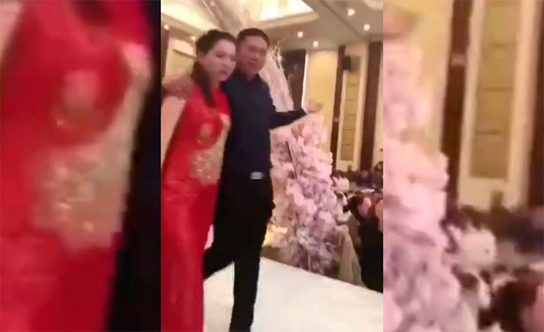 Los familiares de la novia, al ver lo que había sucedido, se subieron al escenario para separarlos y le dieron una dura golpiza al hombre. A la vez, los parientes del novio también salieron a defender a su familiar, y la boda increíblemente terminó siendo una batalla.