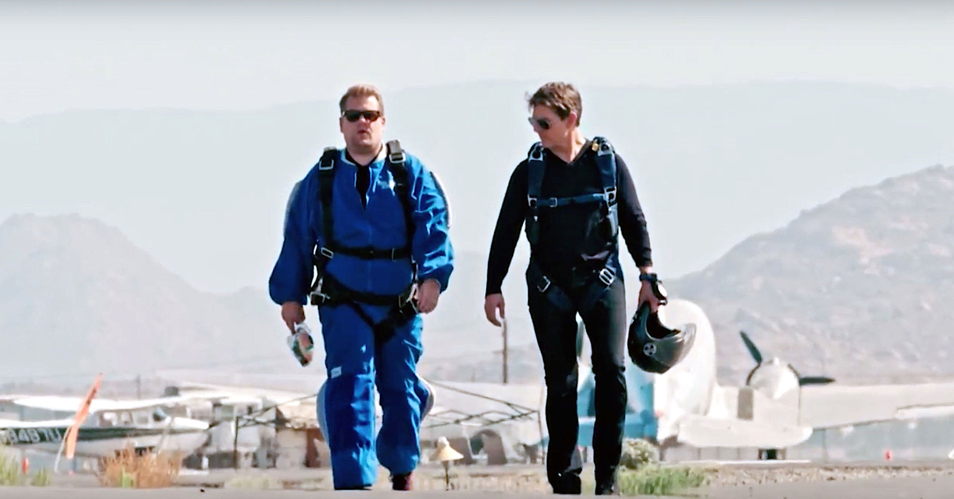 En el programa estadounidense ‘The Late Late Show’, Tom Cruise desafió a James Corden, el presentador del programa, a saltar en caída libre desde un avión que volaba a 4.