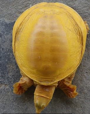 La tortuga obtiene su extraña coloración de una mutación genética extremadamente rara que cambia su pigmentación.