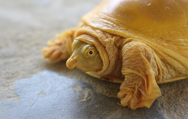 La tortuga dorada tiene una condición llamada leucismo cromático, que se caracteriza por una pérdida de pigmentación del color.