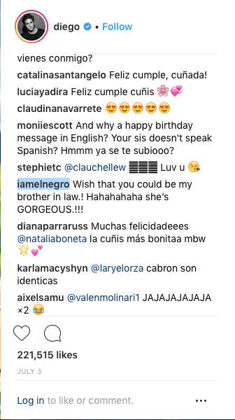 Inmediatamente sus seguidores comenzaron a comentar la imagen. La mayoría alabando la belleza de su hermana, incluso lo llamaron cuñado, cómo fue el caso de este usuario:
