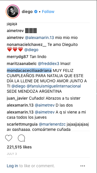 “Muy feliz cumpleaños para Natalia, que este día la llene de mucho amor junto a ti.”