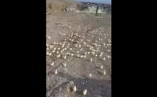 En medio de un vertedero nacieron miles de pollitos luego de que los propietarios de una granja avícola desecharan los huevos porque pensaron que estaban “estropeados”.