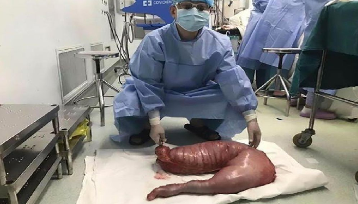 El Dr. Rosenfeld comparó a su paciente con una mujer embarazada. El desperdicio que se acumulaba en él era casi igual a un embarazo de nueve meses.