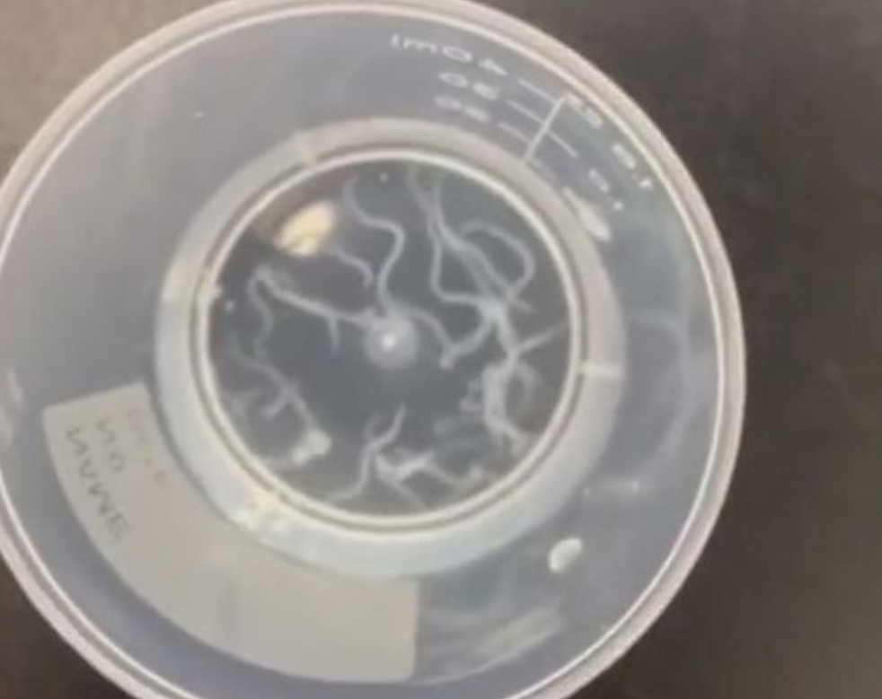 El Dr. Xi Ting luego identificó un grupo de pequeños gusanos atrapados debajo del párpado derecho de Wan.