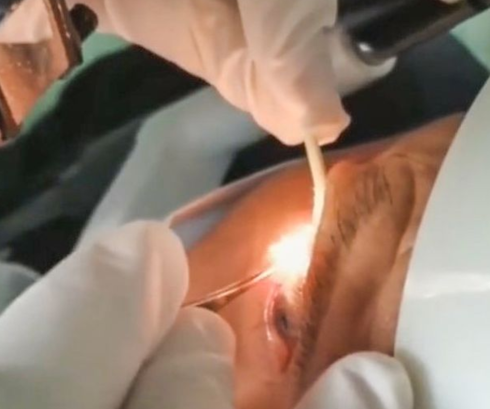 Ha surgido un video impactante de un médico que extrae 20 gusanos vivos del ojo de un hombre.