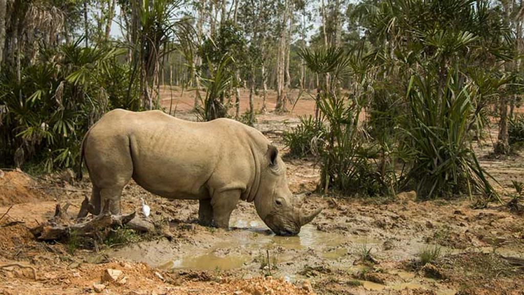 Al pequeño rinoceronte se lo ve “atacando” a los veterinarios que intentan ayudar a su madre, sin embargo no es lo suficientemente fuerte como para que logre ser un peligro para las personas.