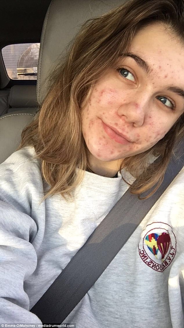 Esta joven llamada Emma O’Mahoney comenzó a sufrir de acné cuando tenía 15 años y decidió someterse a un tratamiento para que su cara quede más limpia.