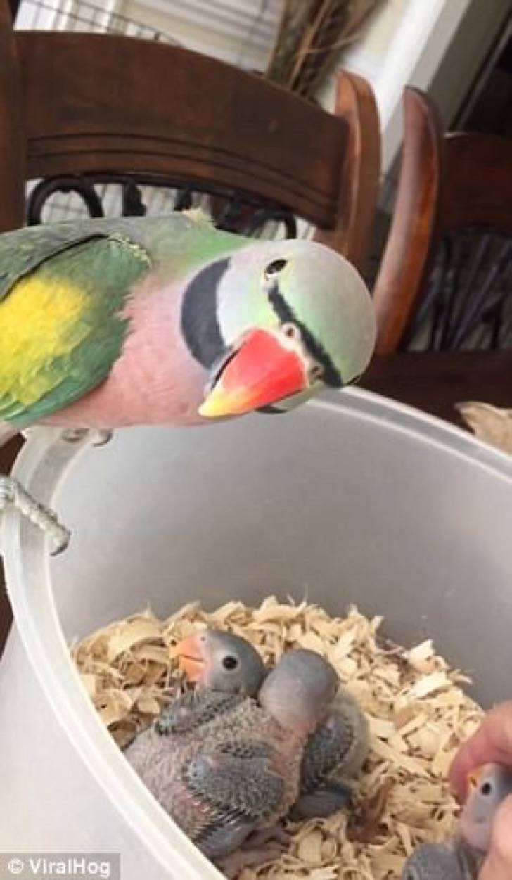 Es después de esto que sorprendentemente, el ave comienza a repetir la frase “voy a alimentar a los bebés”, es impresionante la inteligencia de esta hermosa ave.