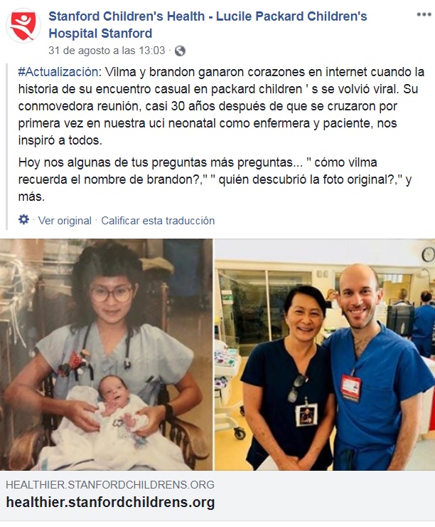 Hace unas semanas en el Facebook del hospital Lucile Packard, donde nació Brandon, publicaron un acontecimiento que se ha convertido en un fenómeno y ha sido compartido por miles de personas. Fue un suceso extraordinario que vivió Brandon, 28 años después comenzó a trabajar en ese mismo hospital como pediatra residente y fue el destino el que volvió a unir a aquella enfermera que lo cuidó cuando era un bebé prematuro y él ahora un joven pediatra.