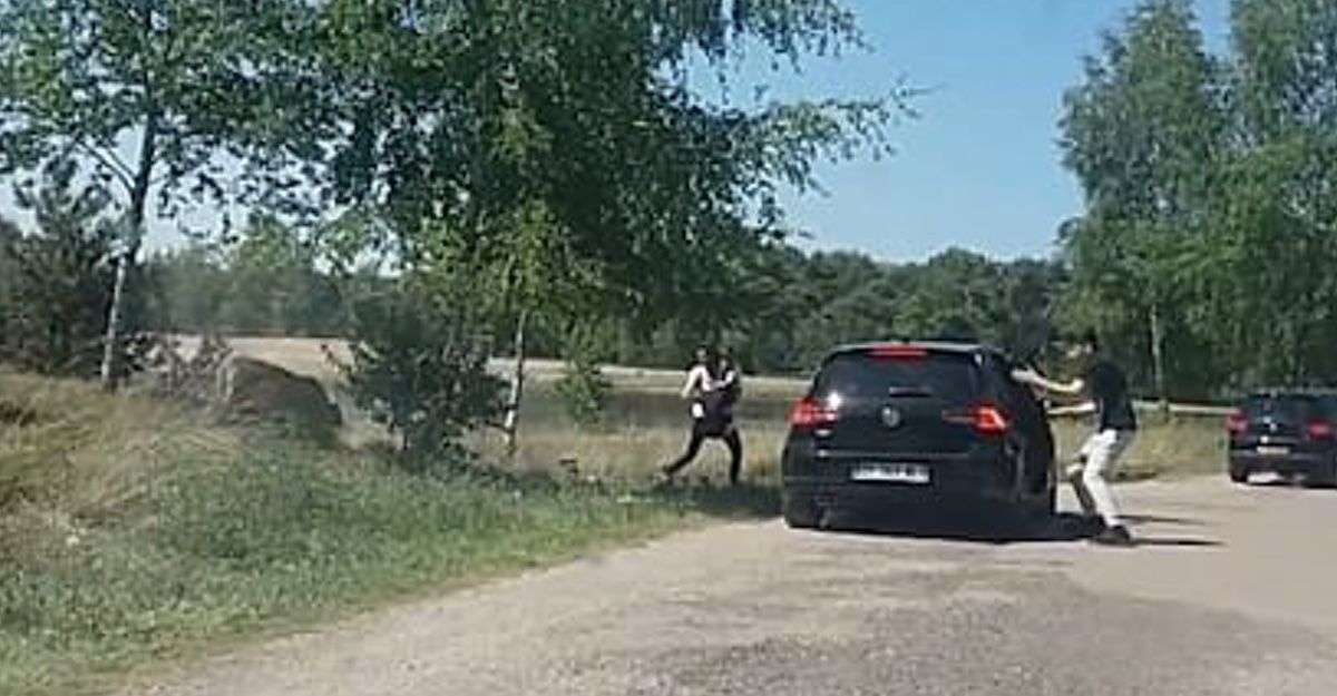 Ante la peligrosa situación, el padre y el hijo mayor se subieron rápidamente al auto, mientras que la madre corrió para ponerse a salvo.