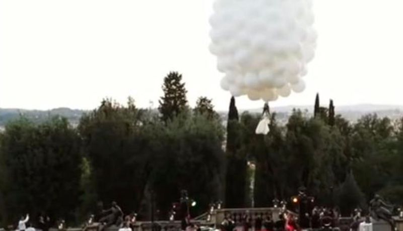 Uno de los invitados grabó el momento, y el video se hizo viral en las redes, donde se puede ver a una joven italiana llegar a su boda al estilo de la película de Disney UP.