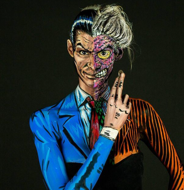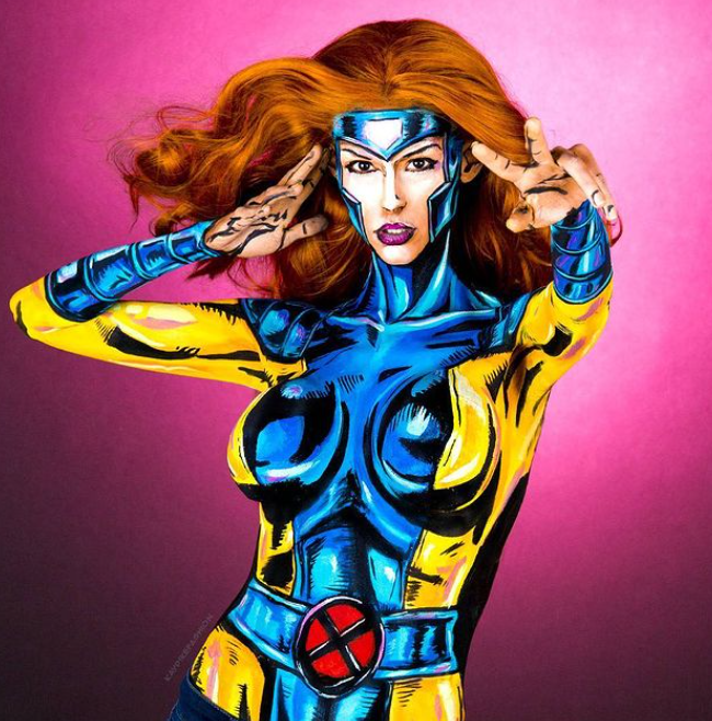 Afortunadamente, en 2015, durante la Edmonton Comic and Entertainment Expo, descubrió “cospaint”, una forma de arte intrigante que le permitió transformarse en prácticamente cualquier personaje de cómic, caricatura o videojuego usando pintura corporal.
