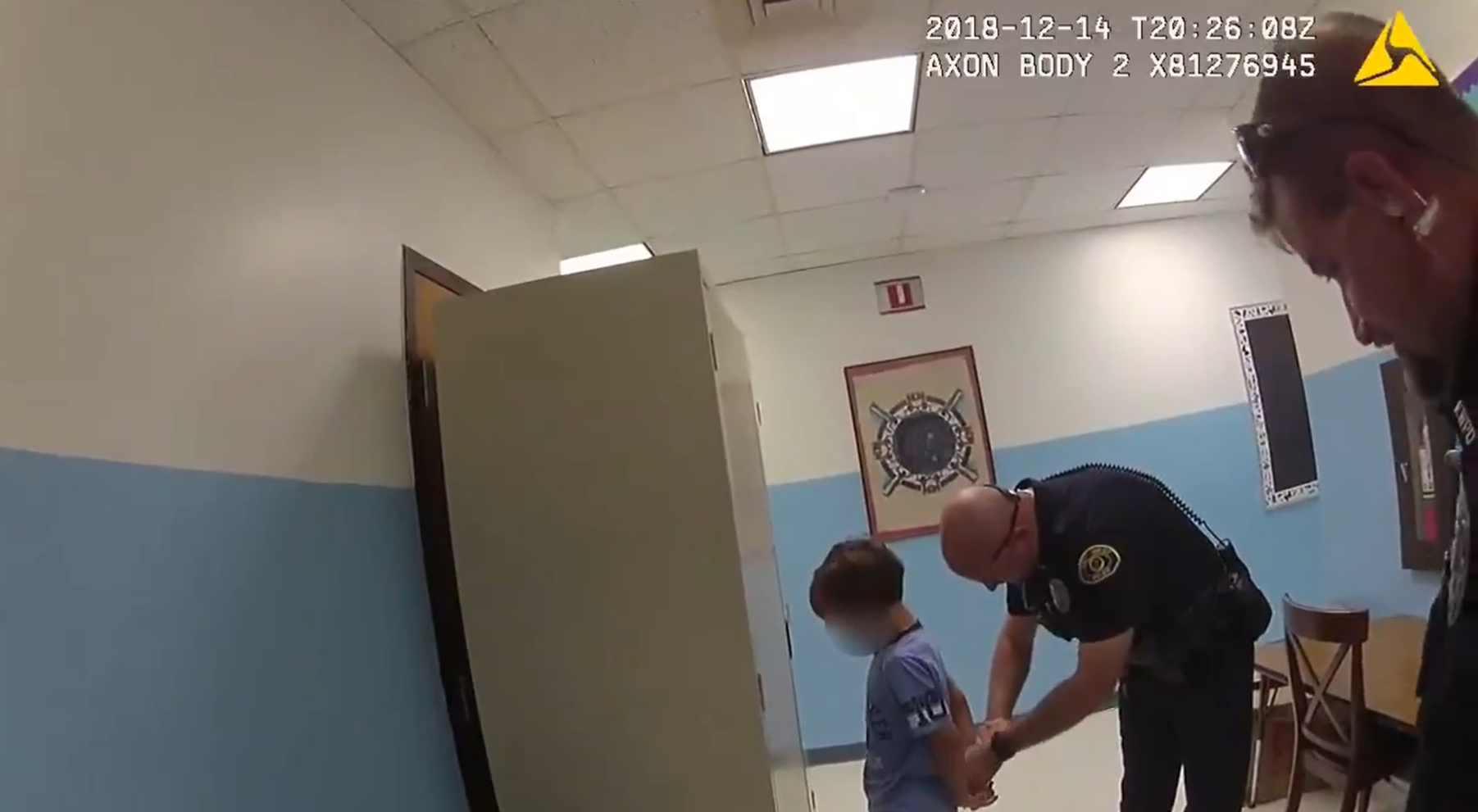 Según USA Today , el incidente tuvo lugar en diciembre de 2018 en una escuela de Key West en Florida y muestra a los oficiales de policía bajando al niño y diciéndole que irá a la cárcel.
