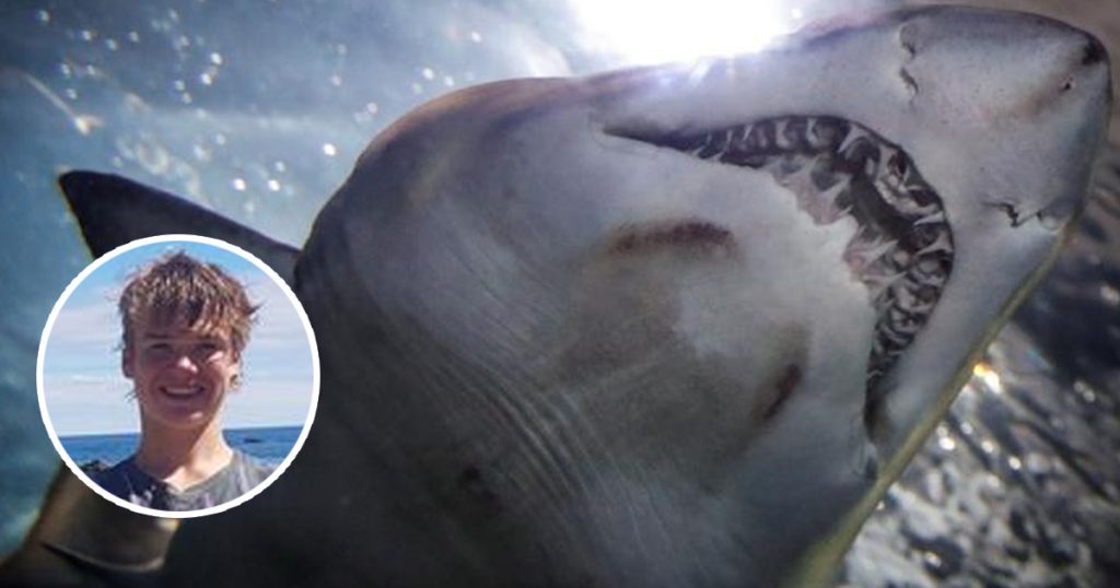 Las imágenes muestran el momento en que un adolescente se topa frente a frente con un enorme tiburón, mientras practicaba pesca submarina frente a las costas de Nueva Zelanda, y se salva por poco de que el depredador le arrancara la mano de una dentellada.